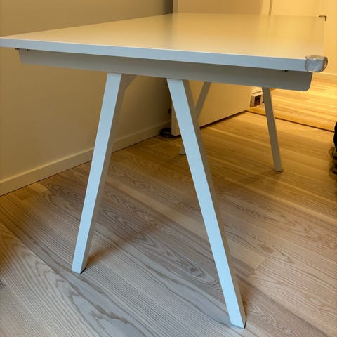 IKEA skrivebord med opbevaringsrum og skuffer i hvid.