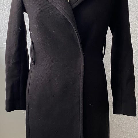 Skøn halvlang frakke med for. Lynlås for og lommer. Krave. Kun brugt lidt.