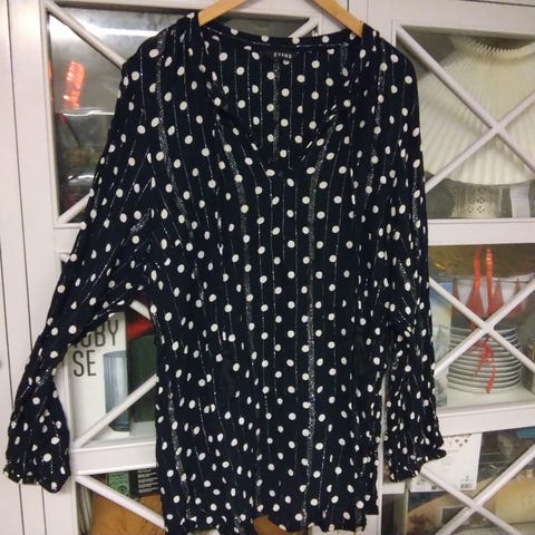 Evans bluse i rød farve med blomsterprint, lavet af viskose materiale. Blusen er designet til kvinder og har størrelse 54. Korte ærmer. Halsudskæring med folder.