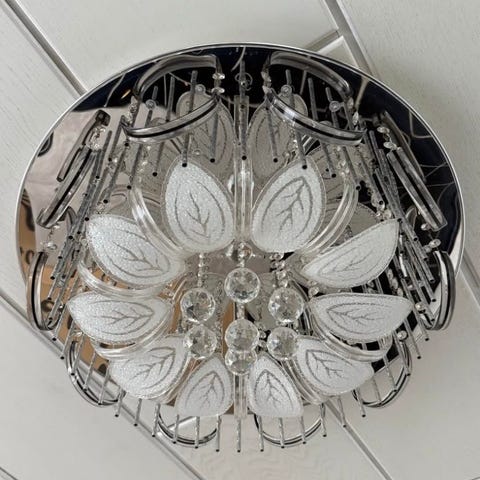 Retro elegant krystal loftlampe, endda betrukket med 24 karats guld. Denne loftlampe vil være prikken over i'et i en hver hyggelig stue indrettet i reto indretningsstilen.