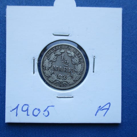 Tyskland 1/2 mark 1906 F sølv