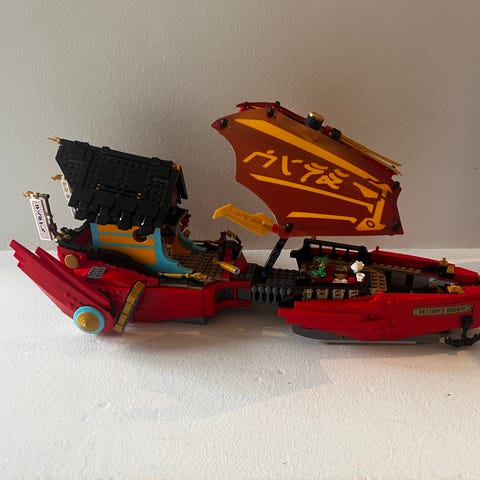 LEGO Ninjago legetøjssæt. Der venter ninjafans spændende eventyr til havs med det unikke og supercool LEGO® NINJAGO® legesæt Katamarankamp til havs (71748). En af de 2 medfølgende katamaraner kan deles op i 3 separate legetøjsbåde, hvoraf den ene indeholder et minifængsel, så børn har alt, hvad de behøver for at nyde timevis af fantasifuld leg.