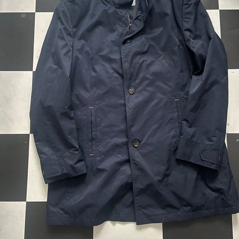 Meget varm og med flere både udvendige og indvendige lommer. Aftagelig hætte.