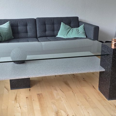 Sorte Skyglasborde med jernstel og kant - flot som sofabord eller pyntebord.