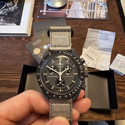 Mission to the moon kan følge med gratis, så kan man sammenligne hvor gode de desværre er blevet til kopi ure, men man kan godt se nogle forskellige detaljer som skilder sig ud, f.eks stopuret.