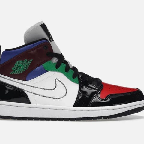Air Jordan 4 Sneakers i størrelse 42. Skoene er hvide med blå detaljer og har en klassisk design. Materialet er primært læder og tekstil, velegnet til både hverdag og sport.