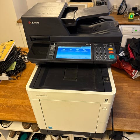 Velegnet til kontor eller hjemmearbejdsplads. Printer, scanner, kopierer og faxer. Fremstår pæn og velholdt, men sælges uden tonere, så nye skal påregnes. Klar til ny ejer.