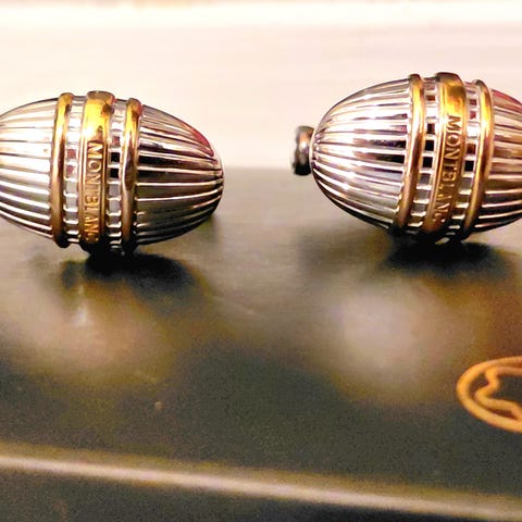 Dengang mont blanc lavede deres ting i sølv og guld og ikke stål. Stemplet mont blanc "germany" "925 silver" og med 18k guld detaljer Art Deco-stil. Massivt sølv med karakteristisk riflet struktur og kontrasterende gulddetaljer et ikonisk Montblanc-design.