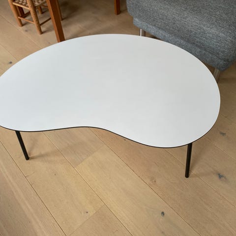Designerzoo - bønnebord- hvid laminat og metal ben. Står flot