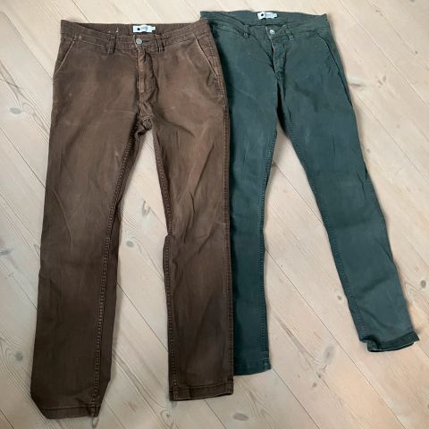 Sælger to stykker Theo (1178) Stretch Chinos i bomuld fra No Nationality NN07 i farverne beige og khaki.