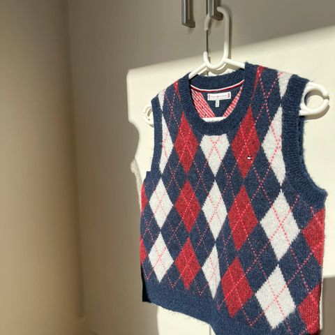 Sød sød vest med forskellige mønstre af garn blandt andet, 8 år.
