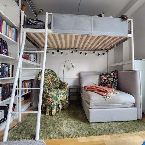 Sælger denne Højseng, med integreret skrivebordsløsning og skab, fra Ikea. Plads til rigtig meget opbevaring!, i fin stand. Den er ikke brugt særlig meget.