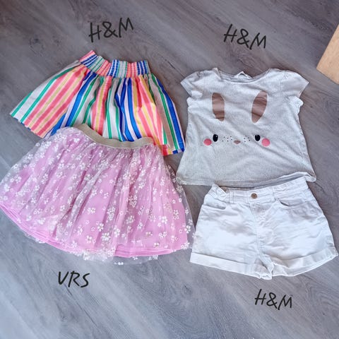 Kjole, trøje, t-shirt og shorts.