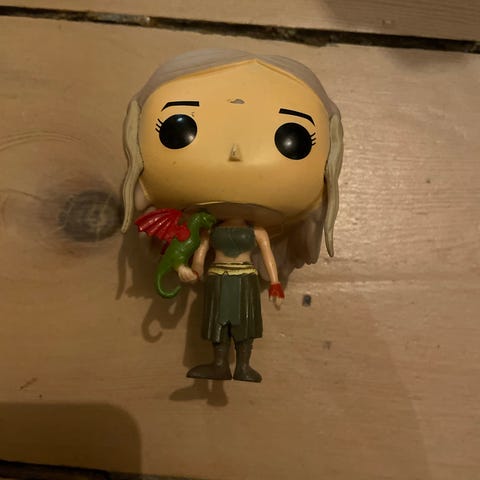 Funko Pop CERSEI LANNISTER figur i sort kjole med sølvfarvet krone. Figuren har store sorte øjne og blondt hår. Størrelse cirka som en håndflade.