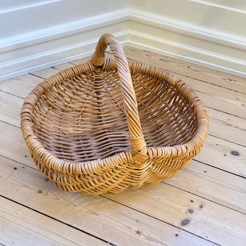 En skøn flettet kurv med hank. Perfekt til diverse opbevaring! Garn, magasiner, osv.