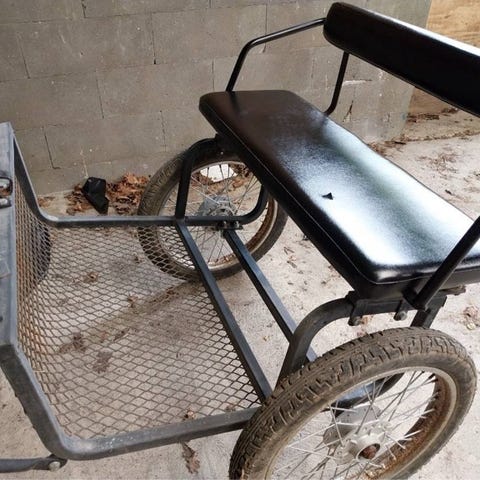 Sulky/ ponyvogn 2hjulet i solid metal blåmalet til pony på 130cm eller lille hest.