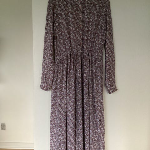 Herlig kjole med swung i skørterne. Flot trykt blomstermønster i afstemte friske farver. Hearts and Roses str. USA 10, UK 14, EU 42. Brystvidde 2 x 48 cm. Ved det sorte indfældede stykke under busten måler kjolen 2 x 40 cm. Længde ca. 108 cm. Bomuld med lidt stræk i stoffet. Snittet er meget feminint, fremhæver dine gode sider. Kjolen er brugt meget lidt.