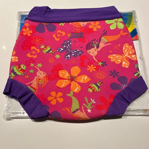 Yndig svømmeble i pink med havfruer, blomster og sommerfugle. Farven hedder Mermaid flower.
