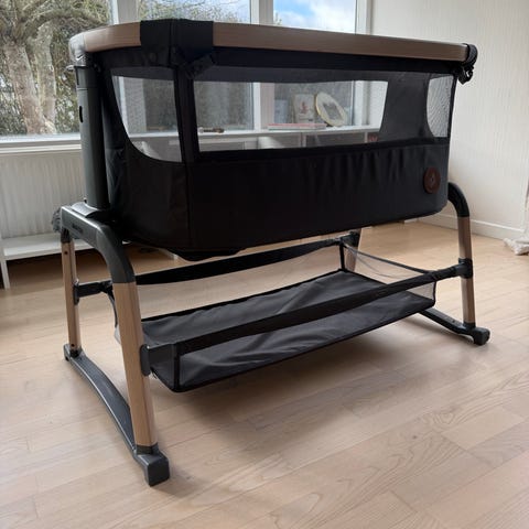 Flot babyseng med opbevaring. Kan indstilles i forskellige højder.