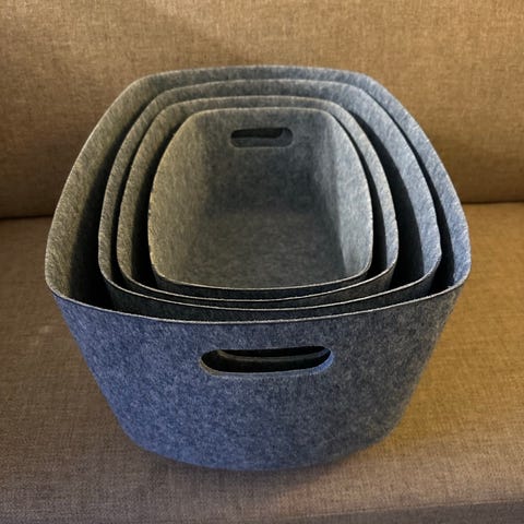 Sæt med 4 filtkurve i forskellige størrelser (36x24x19 cm, 40x27x21 cm, 44x31x23 cm, 48x36x24 cm)