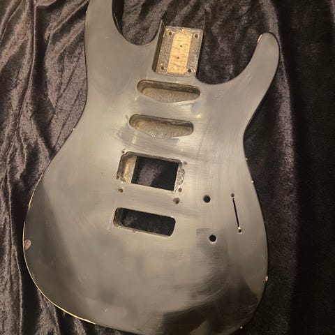 Koreansk krop til guitar projekt, kan ikke lige huske hvad man kalder denne guitar form, men Musicman eller telecaster stil med udfræsning til floating tremolo/Floyd Rose