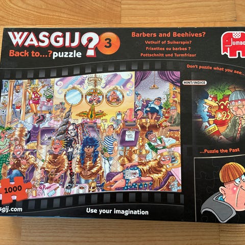 Wasgij puslespil flere af dem kun lagt 1 gang. 950 brikker 50 kr.