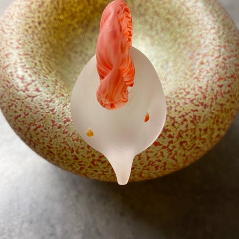 Smuk og farverig sommerfugl i Murano-glas – Vintage skål fra 70’erne. Figuren er mundblæst ud i ét stykke glas med et flot farvespil, som Murano-glas er kendt for.