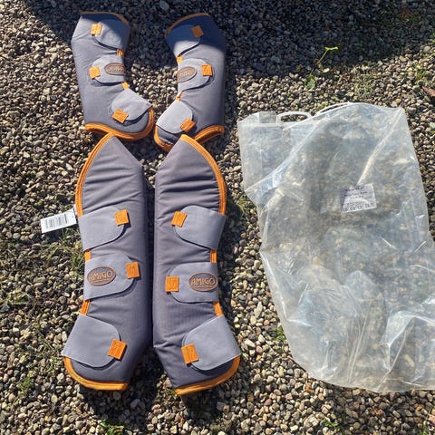 Str COB. Flotte mørkeblå / grå Amigo transportgamacher i meget fin stand sælges.