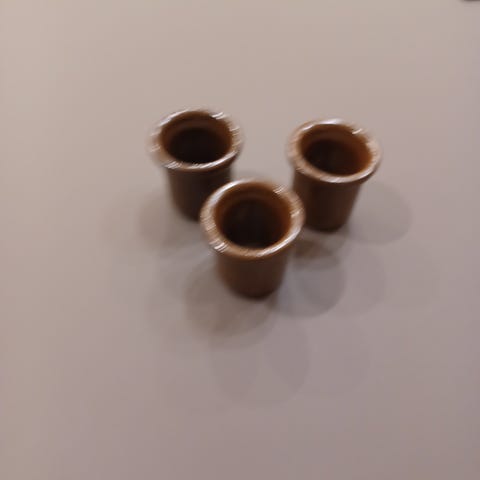 Keramiske æggebægre brun farve. Potterne har en rund form med en let udvidet kant. ESLAU TUE . Sælges samlet.