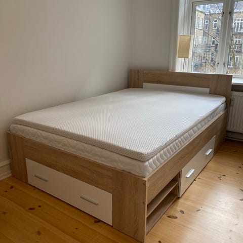 Rigtig fin seng fra JYSK - Dreamzone med god plads til opbevaring under.