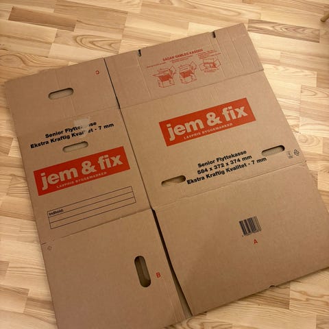 20 flyttekasser senior ekstra kraftige fra Bauhaus brugt 4 timer 20 kr. stykket.