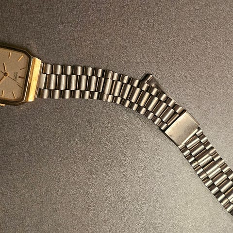 Casio vintage ur fra 1986. Det er modellen Memory Lap 30. Remmen er farverig med et geometrisk mønster og velcrolukning. Uret virker fint men har naturligvis patina efter 40 år i verden.