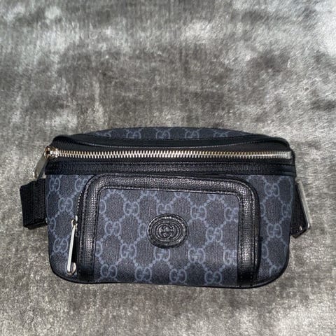 Gucci skuldertaske i læder designet til mænd. Tasken har et mønstret ydre med et justerbart skulderrem i røde og blå nuancer. Den indeholder en lynlåslomme på forsiden og rummelig inderside med lynlås. Velegnet til daglig brug og til opbevaring af personlige ejendele.