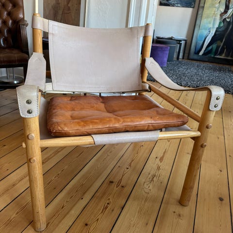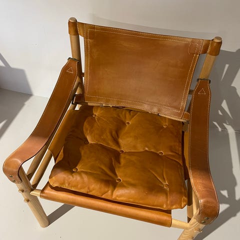 En ægte skandinavisk designklassiker – inspireret af den engelske safaristol, men med Norells karakteristiske kombination af varmt træ, smukt nyt kanvas og håndværksmæssig præcision.