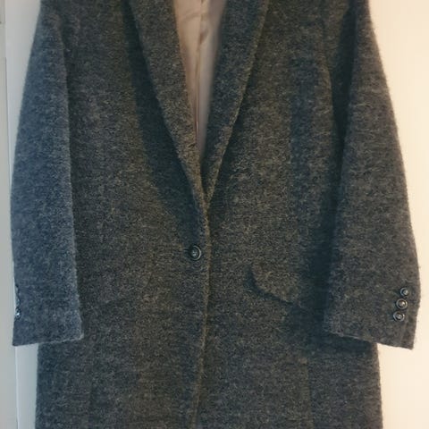 Dame frakke til pænt brug. 80% uld og 20% viskose. Er kun meget let brugt og fremstår derfor så godt som en ny frakke.