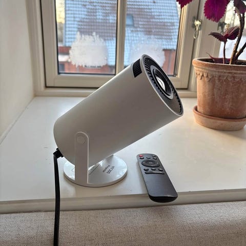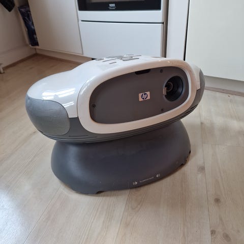 hp digital projektor xb31 projektor med tilbehør og bæretaske. Projektoren har en grå og sort farve og leveres med en beskyttende taske til opbevaring og transport.