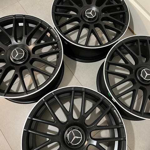 Et sæt Orignale Mercedes G63 AMG fælge. Fælg farven er lysgrå og med diamondcut eger. En fælg har en skramme ellers står de andre snurre lige. Dæk er ikke for gode. Skriv eller ring. Se stand og info på billeder. Indpresningen er 33. Ref nr 875