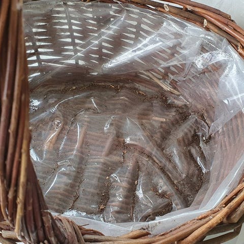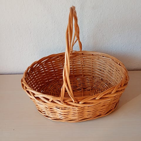 Flettet kurv til ophæng + med hank. Kan bruges til magasiner, blomster etc.