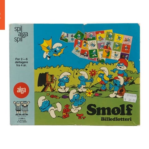 Huskespil med Smølferne fra Burger King. Der er 10 x 2 brikker samt æske. Burger King logo på bagsiden. Brikkerne er som helt nye men æsken har lidt brugsspor. Flere billeder kan sendes.