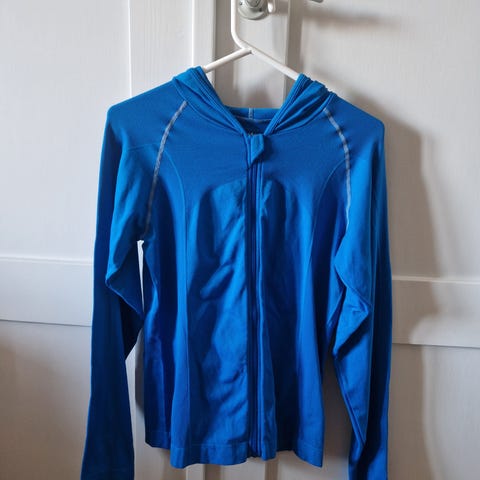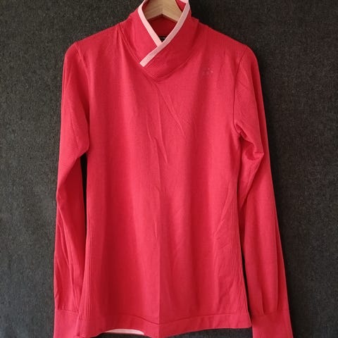 Neonorange varme fleece/løbetrøje fra X TTL, lag 2, huller til tommefingre, ingen lommer, høj hals med lynlås, måler 67 cm foran/72 bagpå (målt fra skulder), bryst 49x2 cm (målt under armene), ærmer 77 cm (målt fra kraven)/54 cm (målt fra armhule), brugt 1-2 gange, pæn og velholdt