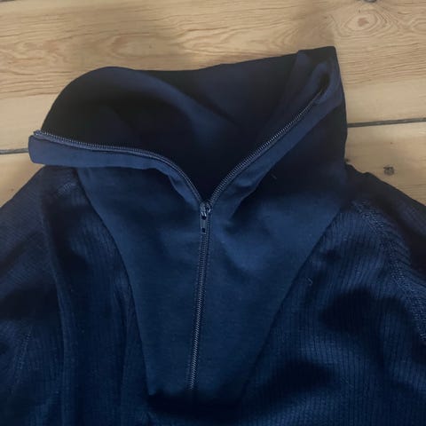 Fra Craft, lag 1, trøjen måler 54 cm foran/59 bagpå (målt fra skulder), bryst 45x2 cm (målt under armene), ærmer 76 cm (målt fra kraven)/54 cm (målt fra armhule), bukserne måler: ben 96 cm (fra livet og ned), maven måler 38x2 cm, ben 80 cm (fra skridt og ned), brugt men pæn og velholdt (dog meget lille trådudtræk på bukser), prisen er for begge dele