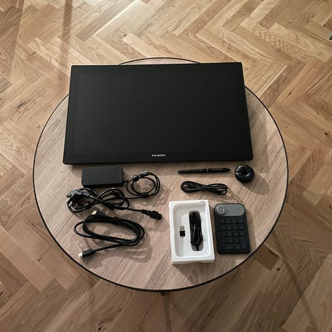 God solid Huion Kamvas Pro 20. Alle kabler, fod og pen samt otte ekstra stifter medfølger, og alt fungerer som det skal. Den kostede 5500 da jeg købte den, og står til omtrenteligt 3100, så synes prisen er rimelig nok, da den er i virkelig god stand. Men man er selvfølgelig velkommen til at give et fornuftigt bud.