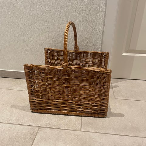 Flettet brændekurv i pil med 2 håndtag.