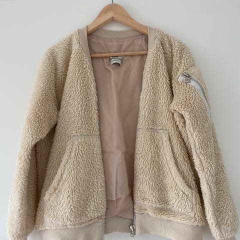 Cottoncoat, str. 42, Mads Nørgaard, Sort, Polyester og cotton , Næsten som ny, Flot sort Mads Nørgaard trenchcoat med blå for med hvide prikker.