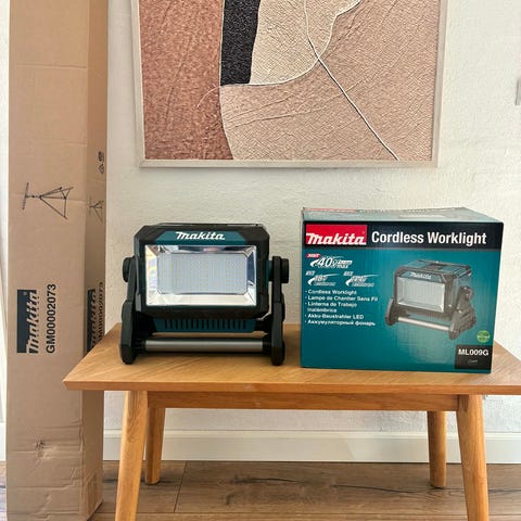Makita ML006G LED arbejdslampe med en lysstyrke på 500 lumen. Lampen er designet til at give kraftig og effektiv belysning til arbejdsområder. Farven på lampen er blå, og den er egnet til brug i forskellige arbejdssituationer.