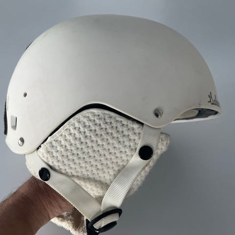 Dame Salomon Icon skihjelm i hvid med ventilationsåbninger og justerbar størrelse.