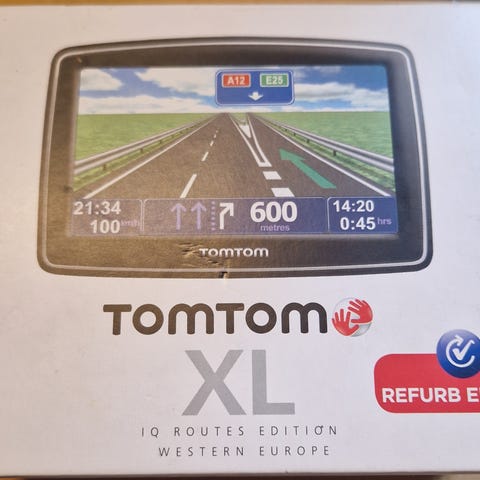 TomTom XL IQ Routes Edition GPS navigation med kort over Europa, der dækker 22 lande. Enheden leveres med tilbehør og brugervejledning, og er designet til brug i bil for at give rutevejledning.