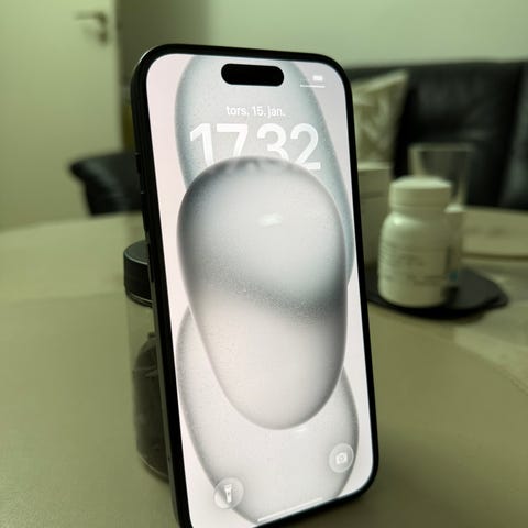 iPhone 15 256Gb super pæn velholdt absolut fejlfri batteritilstand ligger på 85% der medfølger cover og kabel