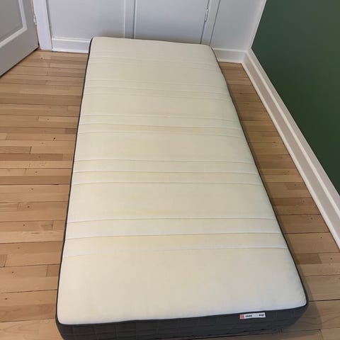 Gæsteseng bestående af 2 madrasser, to topmadresser og to kuvertlagener