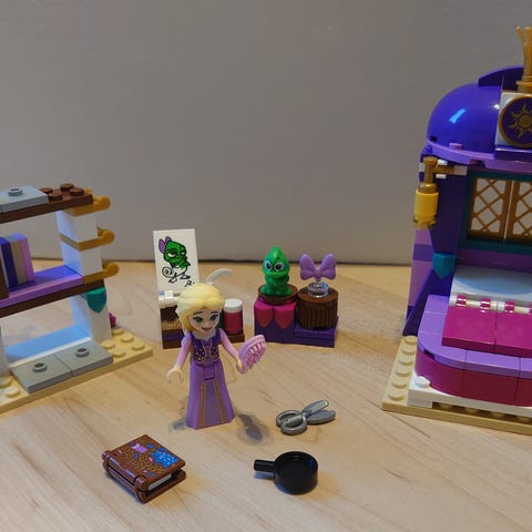 LEGO® l Disney sættet 41156 Rapunzels soveværelse på slottet er nemt at bygge og perfekt til at genskabe yndlingsscener fra Disneys To på flugt: Serien. Det indeholder en flugtvej, seng med skjult rum, reol, staffeli og teleskop. Slip kreativiteten løs med den modulære opbygning, som gør det nemt at flytte og udskifte sektioner i modellen, eller sæt slotsværelset sammen med andre kompatible LEGO l Disney Princess™ sæt for at bygge dine egne drømmekreationer. Der medfølger en minidukkefigur af Rapunzel samt en LEGO figur af kamæleonen Pascal.